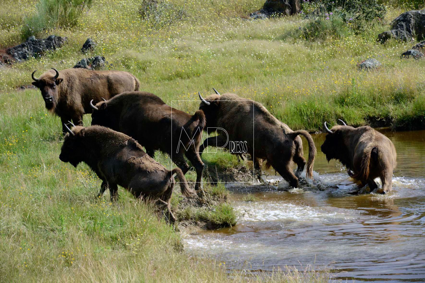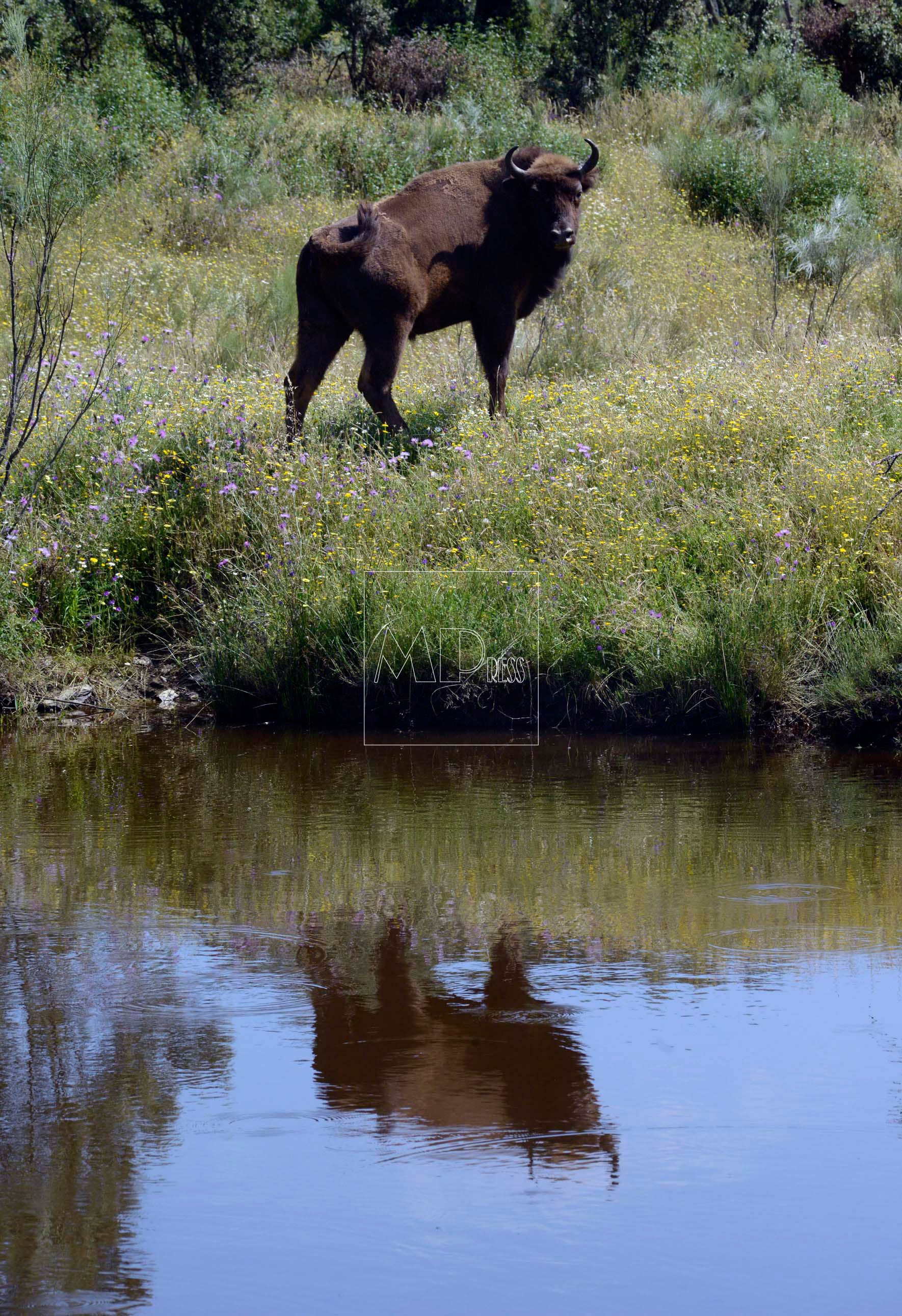 All this takes place in beautiful surroundings of oak, rockrose and Spanish broom turf. There is also a lake where the bison take their daily baths and see their own reflexion. It is so beautiful to watch….