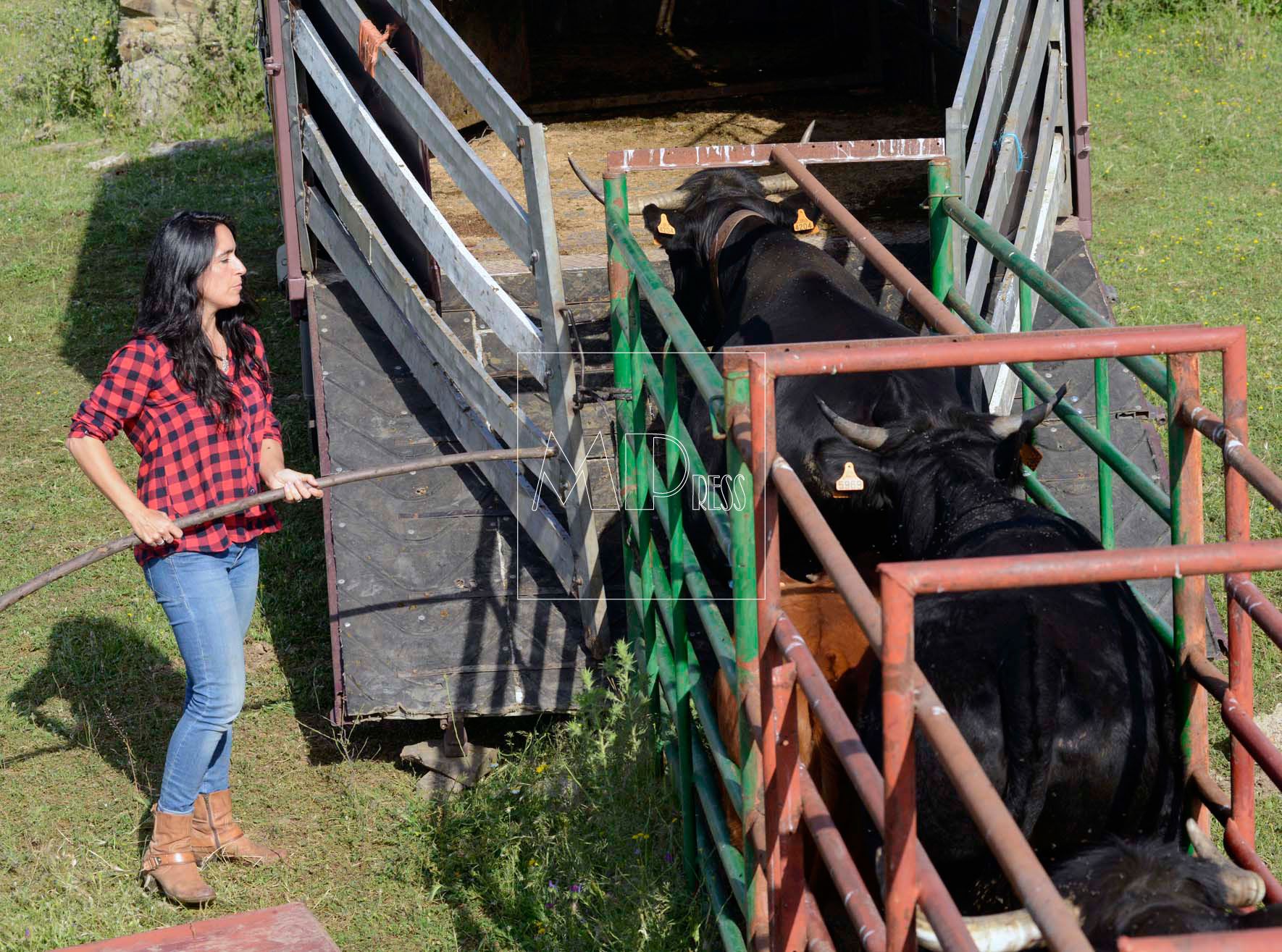 Luego, con sus dos perros Jimmy y Bisón, que la siguen siempre, y su compañero Marco se convierte en vaquera. Tienen medio centenar de vacas y chotos que revisan y cuidan sin complejo alguno, como ganaderos profesionales, en un viejo 4×4 que fue del Ejército Español, al que entra y sale el polvo por todas las partes, y que me hace recordar mis muchos lejanos recuerdos de la mili.