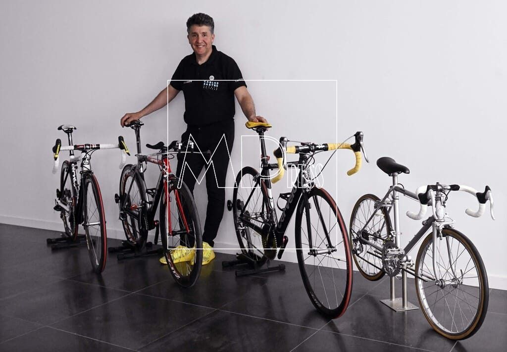 Unos días antes de visitarle en su tienda, me dijo que había sido víctima de un robo; reventaron las cerraduras y se llevaron bicicletas y material por valor 70.000 €. Pero Carlitos, como gran ciclista, está acostumbrado a sufrir muchas caídas durante su vida profesional y tiene muy claro que hay que levantarse y seguir la ruta. Mucho ánimo campeón.