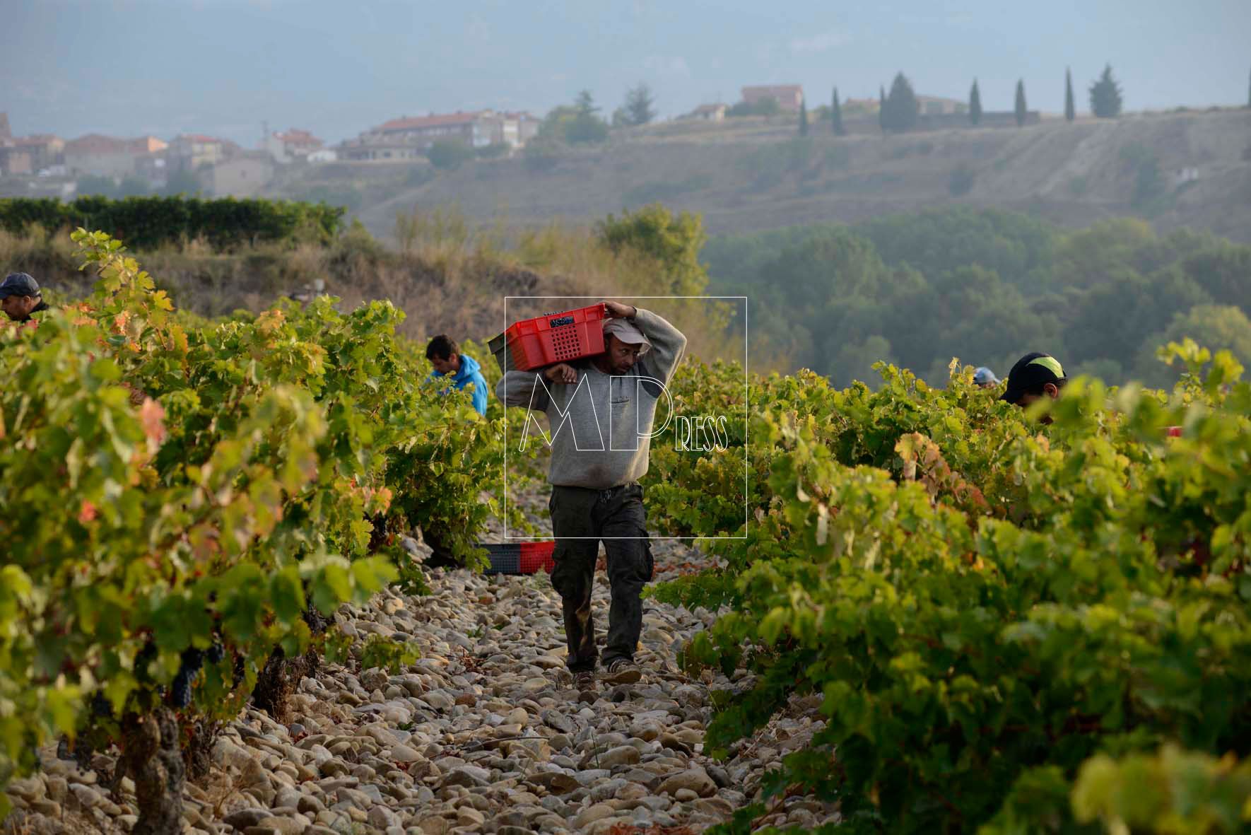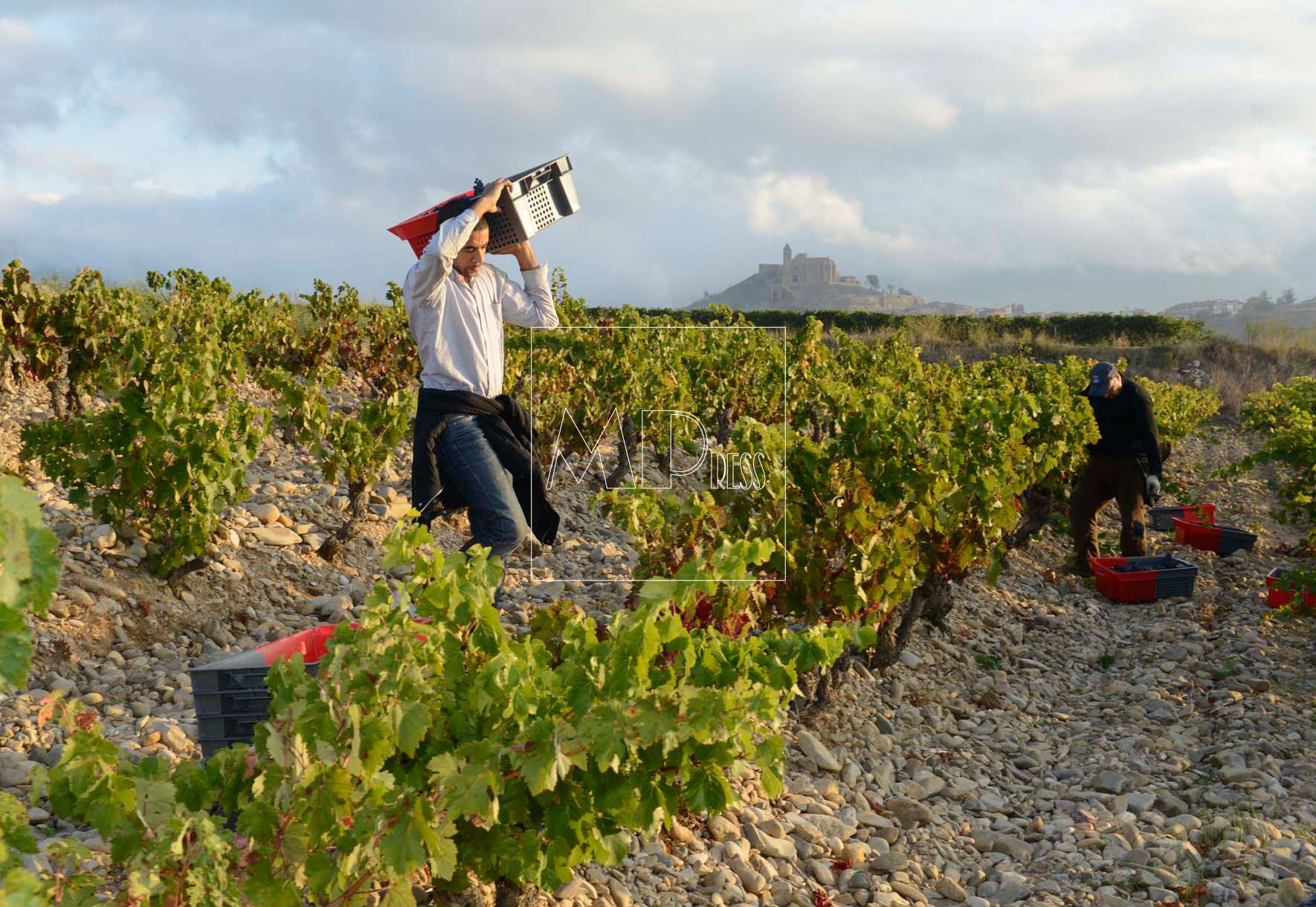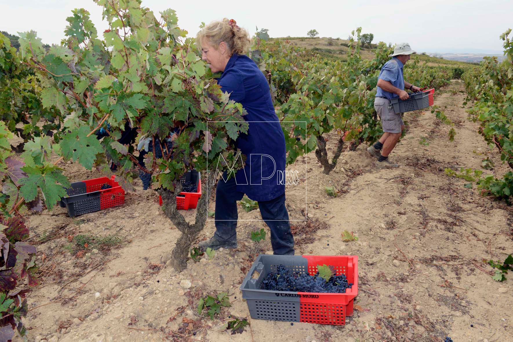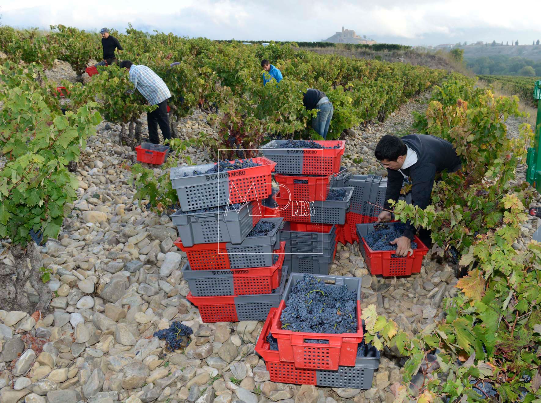 En San Vicente de la Sonsierra, en pleno corazón de la Rioja Alta, en la margen izquierda del río Ebro, están ahora en una fase de ese proceso. El factor imprevisible, la naturaleza, está hoy a favor de los humanos. Ver amanecer en el viñedo La Linde, de 80 años, de la bodega de Carlos Moro, con el río Ebro a los pies discurriendo tranquilo hacia Zaragoza, es un placer. El sol tímido que aún no venció al fresco rocío anima a acompañar a una cuadrilla de doce trabajadores, que se disponen a seguir un ritual milenario.