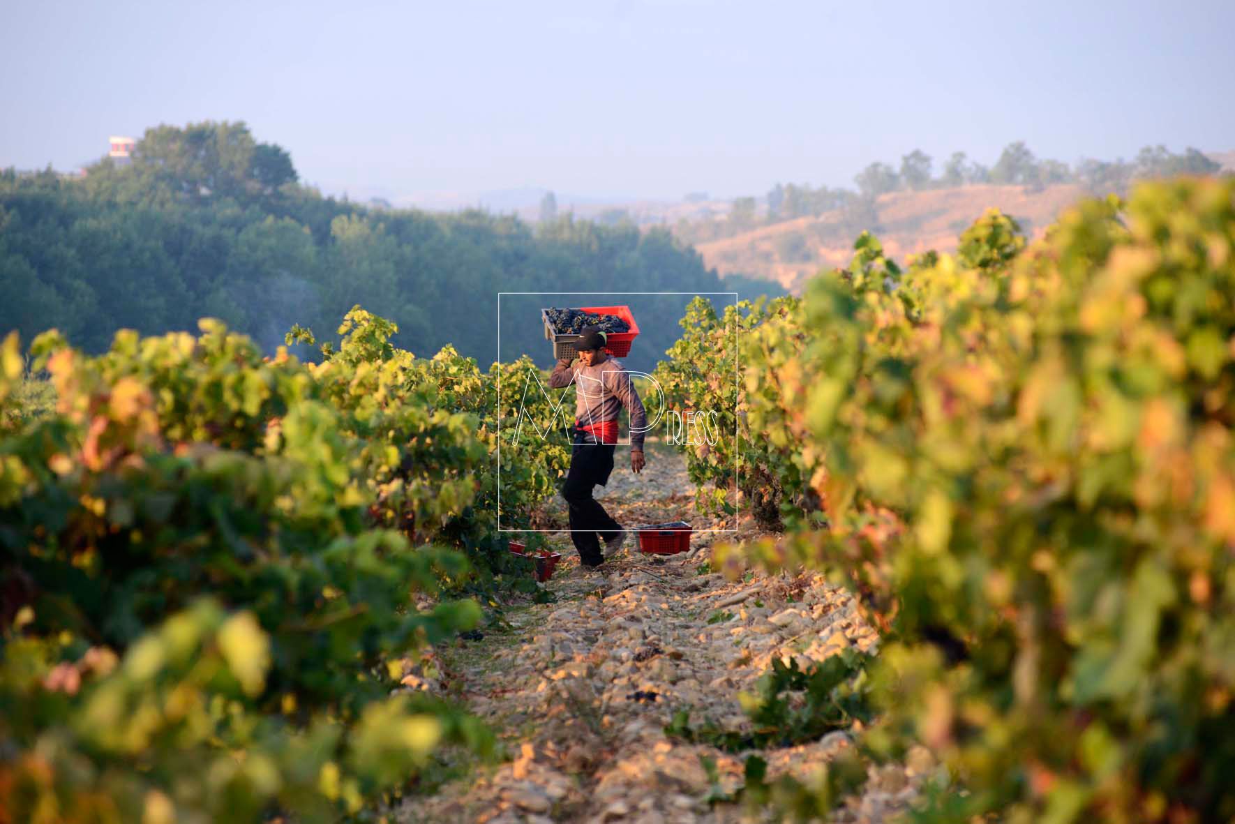 Las viñas crecen en un terreno muy diferente a otros viñedos, con un firme de piedras sueltas y redondas de gran tamaño, que dificultan la tarea de recogida de los racimos de uva que se desarrolla con mucho mimo y profesionalidad seleccionando sólo los de calidad.