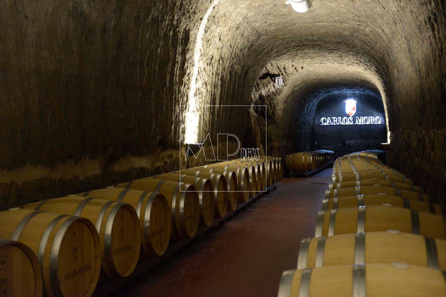 La bodega dispone de unos túneles construidos de manera artesanal con una capacidad para más de 2.000 barricas que permite una crianza de forma natural y homogénea a lo largo del año, ya que se dan las condiciones óptimas de temperatura y humedad, independientemente de las condiciones meteorológicas del exterior, sin dependencia de equipos de frio industrial y climatización. No en vano Carlos Moro trabajó también en la industria aeronáutica.