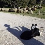 Amongst them is Saba, the sheepdog who takes her commands in French from Dani. She is a real expert and able and with great dexterity and speed guides the flock down the hill around the pine trees.