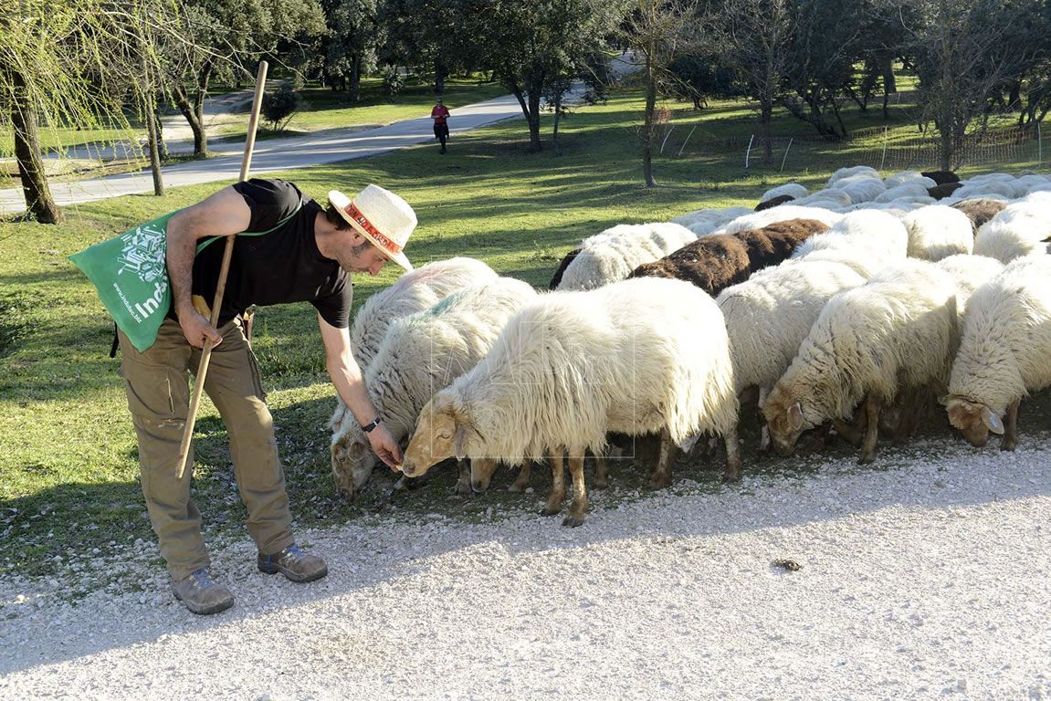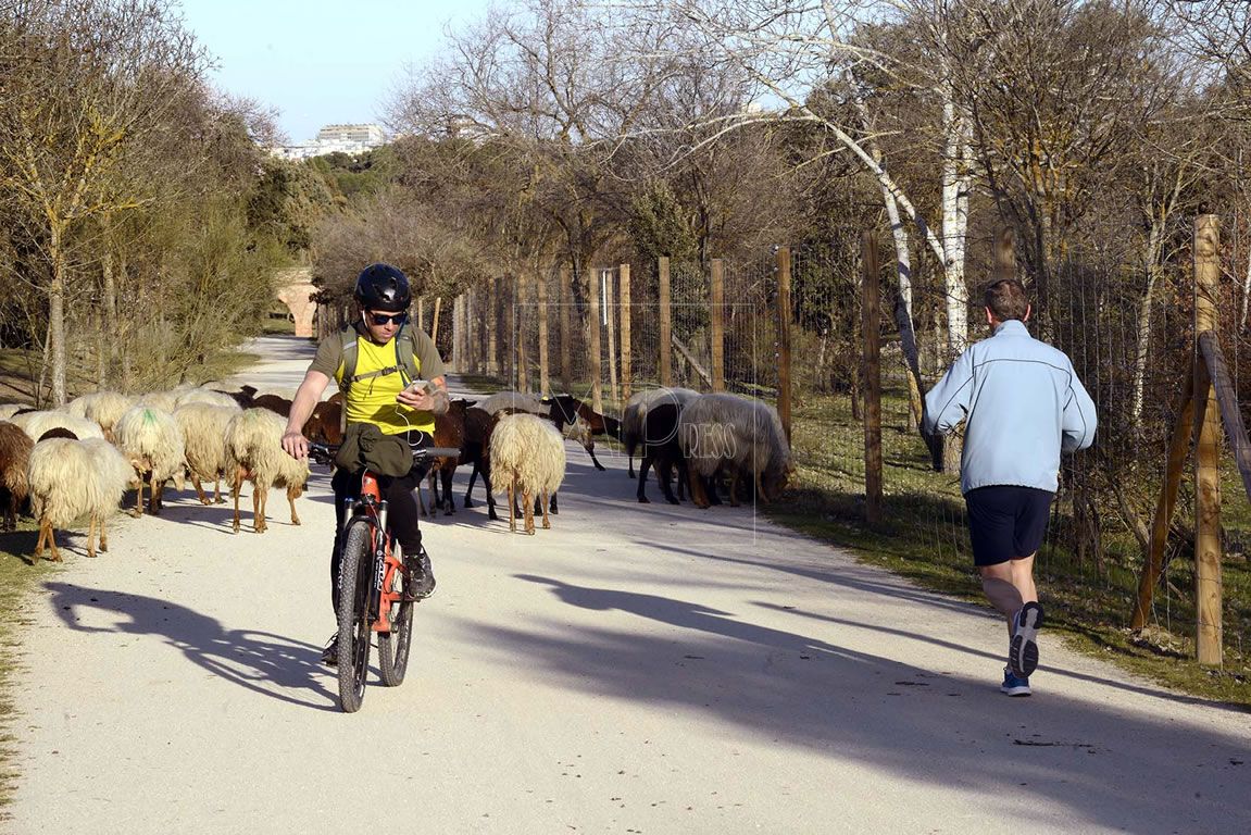 Ellas son las ovejas bomberas que poco a poco van pastando y buscando por todos los rincones las exquisitas hierbas de invierno y las de principio de primavera. Solamente levantan la cabeza para mirar a algún transeúnte que pasea a su lado acariciándolas, o para observar a los cientos de ciclistas, patinadores y atletas que, al igual que ellas, disfrutan de éste precioso pulmón de Madrid.