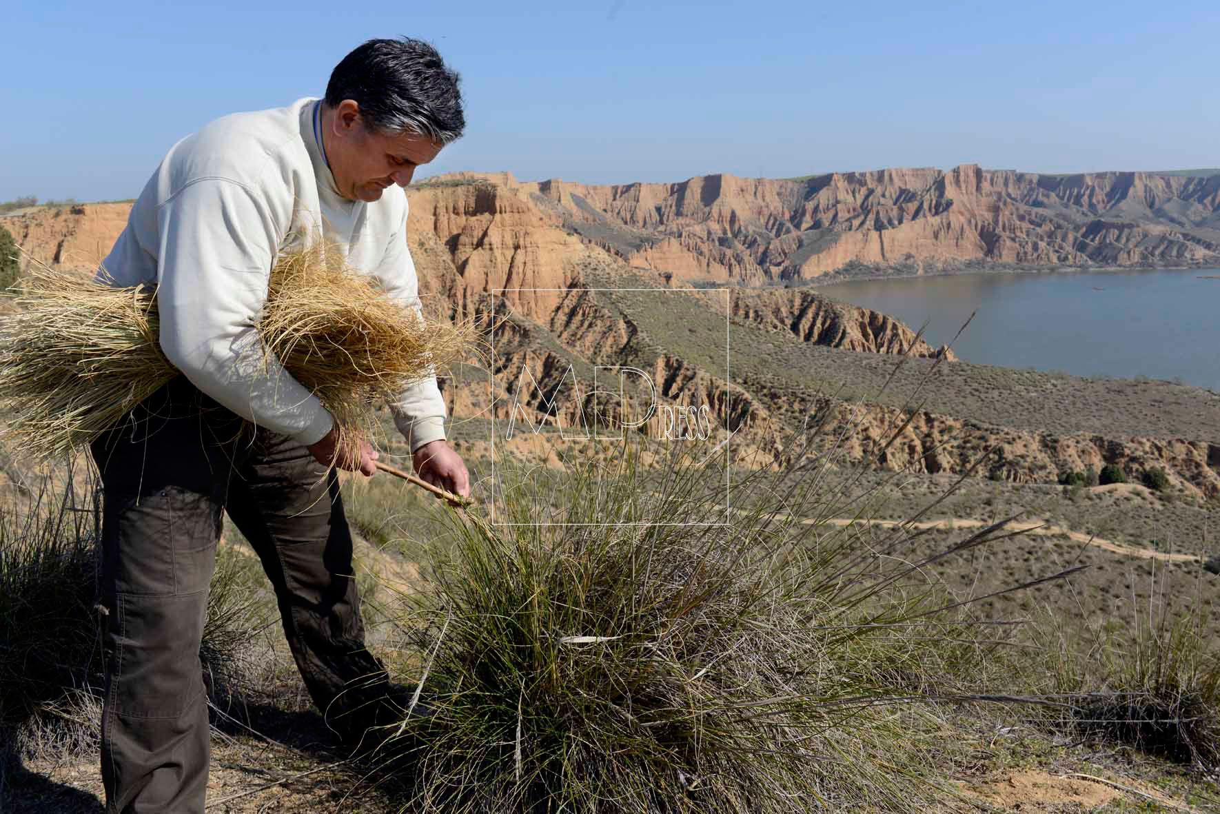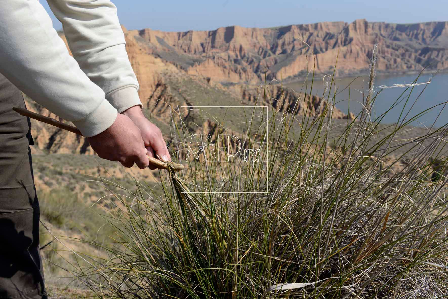La base es la Lygeum spartum, el esparto, una planta que ha ocupado miles de kilómetros cuadrados de zonas áridas, ha permitido sobrevivir a muchas poblaciones y todavía sirve para calzar, empalar, atar, sombrear…