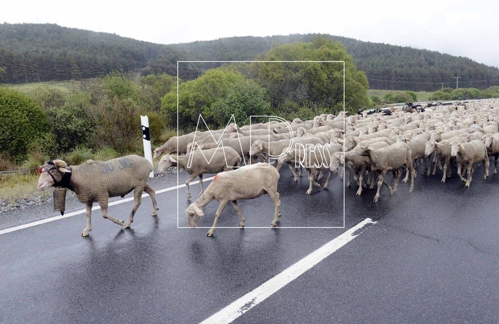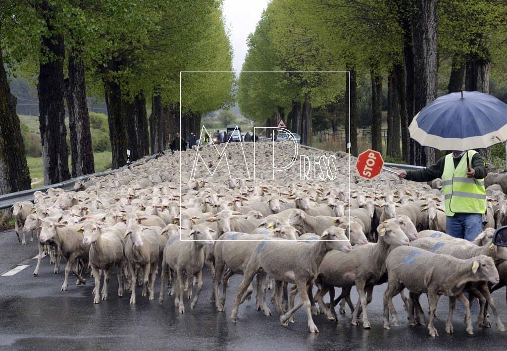 La ruta la encabeza un bonito ejemplar cabestro que se encarga de dirigir el gran pelotón de ovejas, todas muy bien esquiladas y sanas que sin duda van a soportar la dura trashumancia hasta tierras leonesas.