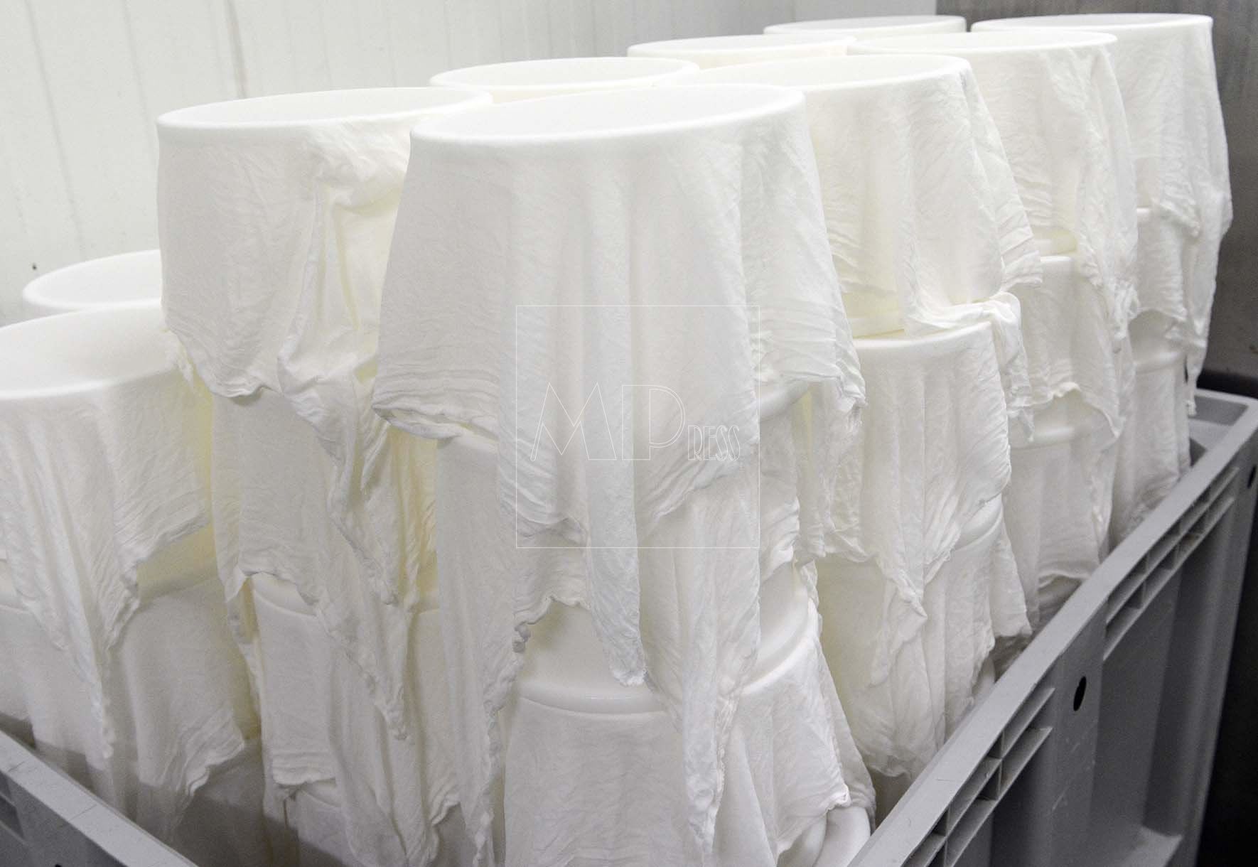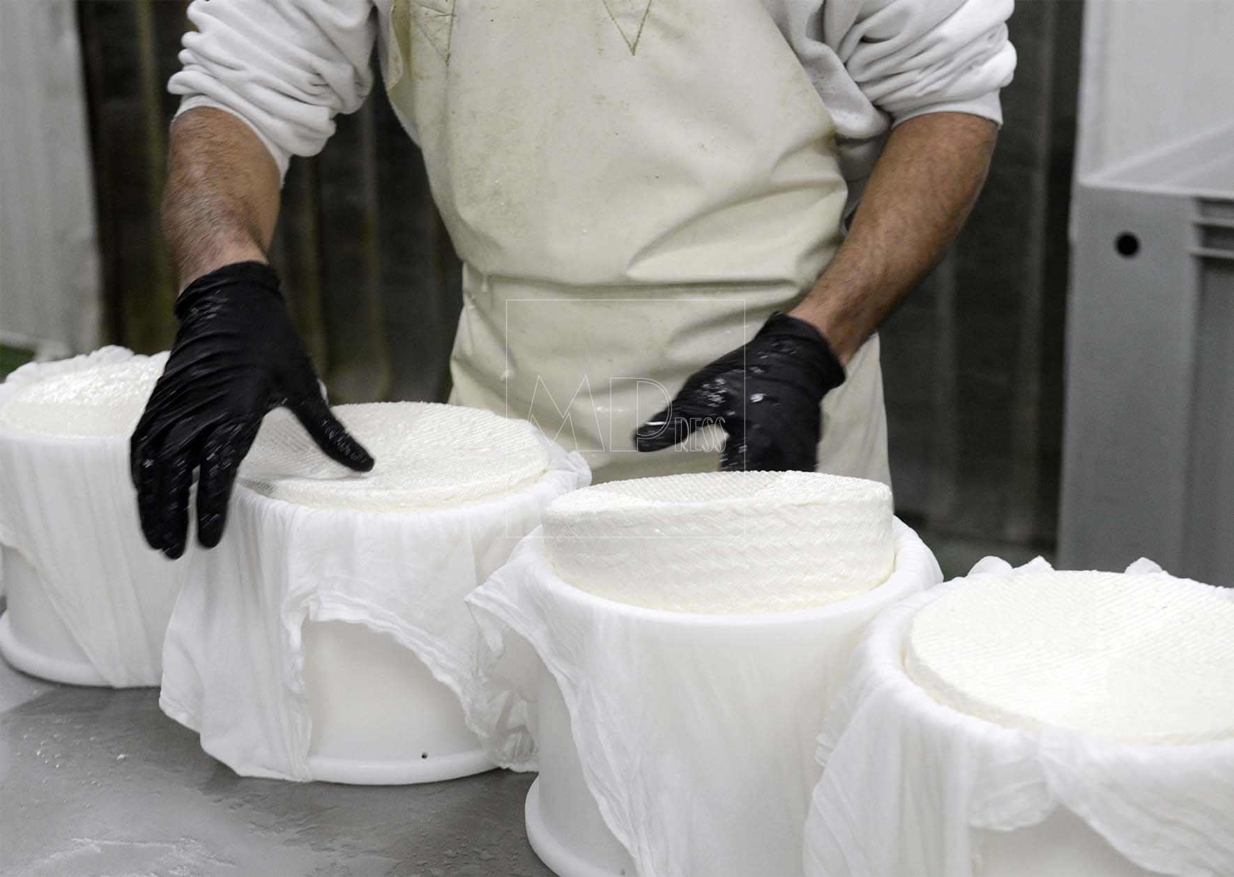 Me encanta ver cómo Antonio, Oscar, Juan, Justi, Sergio e Isabel, entre otros de sus doce trabajadores, hacen en dos horas y media 88 quesos de tres kilos. Y luego, sin descansar, con extrema higiene, los cubren con unos paños y los prensan y los trabajan hasta que los meten en unas neveras gigantes para curarlos.