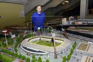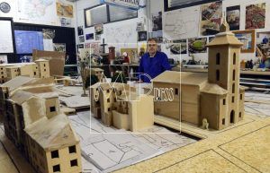 Luis García lleva con el proyecto más de diez años y la visita es a un lugar muy especial, en los bajos de las gradas del campo de fútbol, donde juega la Cultural Leonesa. Aquí Luis, realiza todas las obras y trabajos como maquetista, utilizando miles de maderas, tejas, adoquines, ventanas, fabricando en miniatura la Catedral de Santa María de Regla y todos los barrios, el Húmedo, el Romántico y recomponiendo lugares de la historia de la capital leonesa.