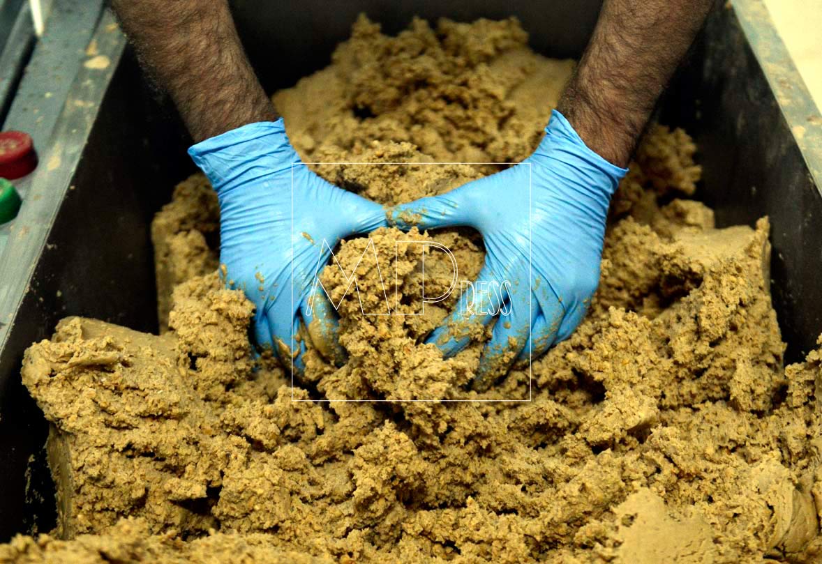 El museo, imán para potenciales clientes, dispone de un despacho de productos que no da abasto en estas fechas, con picos de visitantes como el del pasado día de la Inmaculada, cuando recibieron a casi cincuenta autobuses. La producción media de la fábrica es de un cuarto de millón de kilos por campaña. Los empleados son en torno a setenta, la mayoría mujeres, y Andrés los conoce a todos. Son los mismos desde hace mucho tiempo. Cada octubre, regresan al empleo que dejaron el anterior diciembre. “Carmen, por ejemplo, puede estar trabajando aquí desde los años 60, cuando era una cría. Victoria lo mismo. Mari lo mismo. Y ahí está una y su hija, o una y su hermana… va así. Gente que está toda la vida trabajando con nosotros. Los tienes siempre. Y si ellas no pueden venir, proponen que venga su hija”.