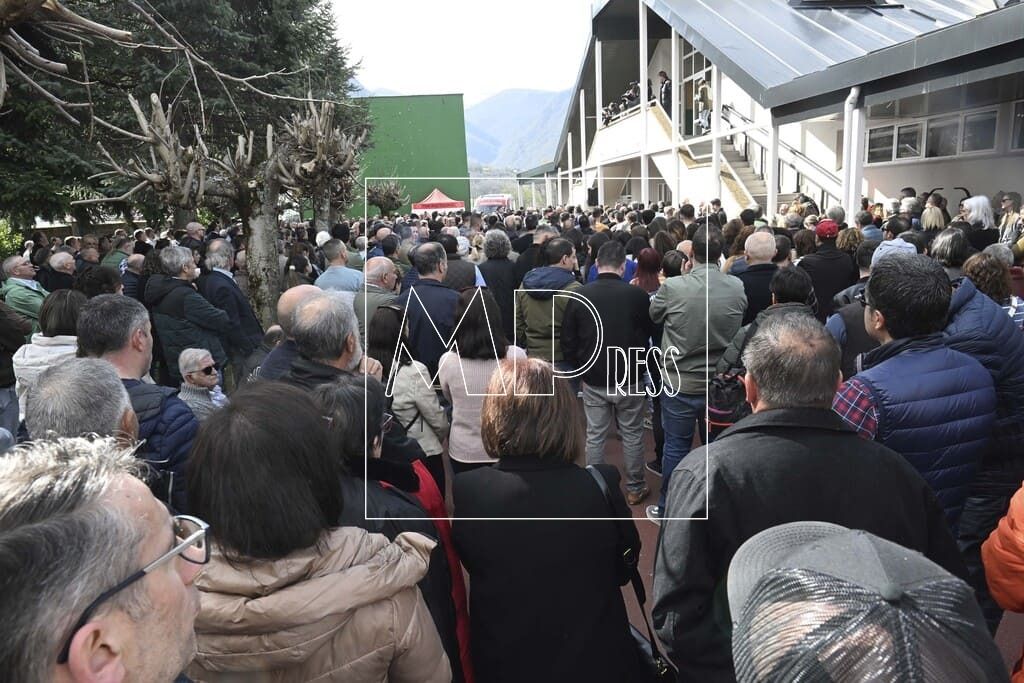 La misa estaba prevista para las 12.00 horas, teniendo que ser retrasada unos minutos por la avalancha de público en el polideportivo, donde tuvieron que limitar el aforo por no poder entrar nadie más. Más de tres mil amigos y familiares de los mineros tuvieron que quedarse en el exterior y en los alrededores, donde siguieron la misa por megafonía; allí también se encontraban las autoridades que se desplazaron desde Madrid; la Vice-presidenta tercera y Ministra para la Transición Ecológica, Sara Aagesen, Oviedo, el Presidente del Principado, Adrián Bardón, desde Valladolid, Alfonso Fernández Mañueco, el alcalde de Villablino, Mario Rivas y otras muchas autoridades.
