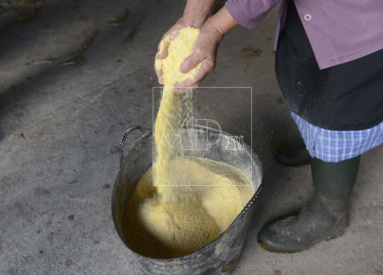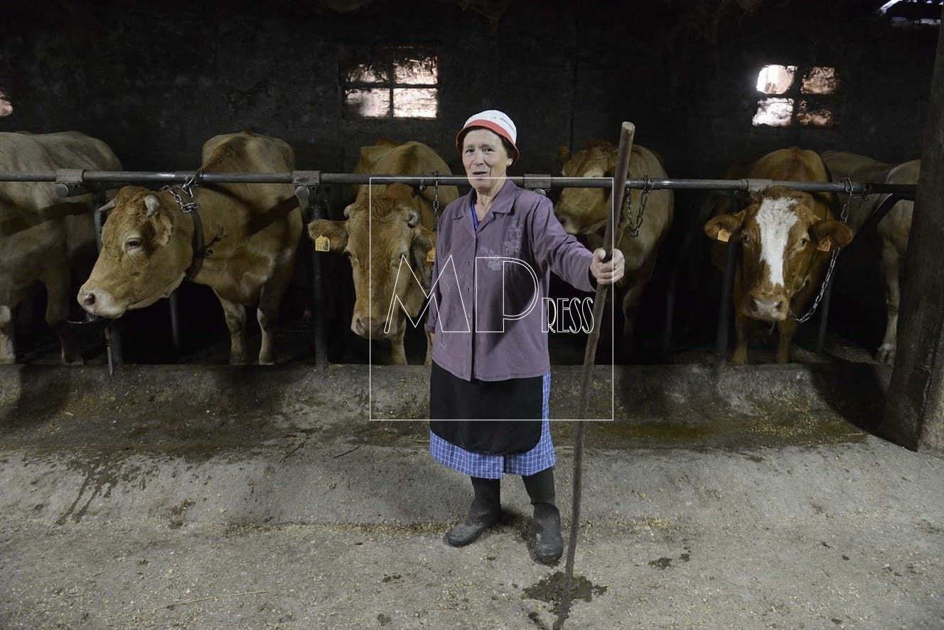 I find Maricarmen, a woman dressed in a blue checked overcoat, black apron, purple jacket, white hat and a stick in hand ready for a hard day’s work. Of a mature age, she moves like a young woman and looks after the herd with tender love; she says proudly that all the animals know her. Always helped by her son, they share the hard work each day making sure the cows are kept under the best conditions.