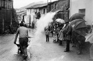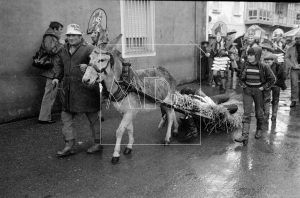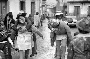 Ya hace 41 años de mi visita a la localidad Gallega de Laza, Orense, para hacer un reportaje de los famosos carnavales de Laza, Los “Peleteiros” son los protagonistas quienes se cubren las caras con unas caretas pintadas de figuras de animales, como lobos, cabras, gatos, caballos y con unos trajes muy vistosos de pantalones con borlones, fajas de colores, medias blancas de punto y unos cinturones de cuero que sujetan media docena de grandes cencerros de metal detrás de la cintura.