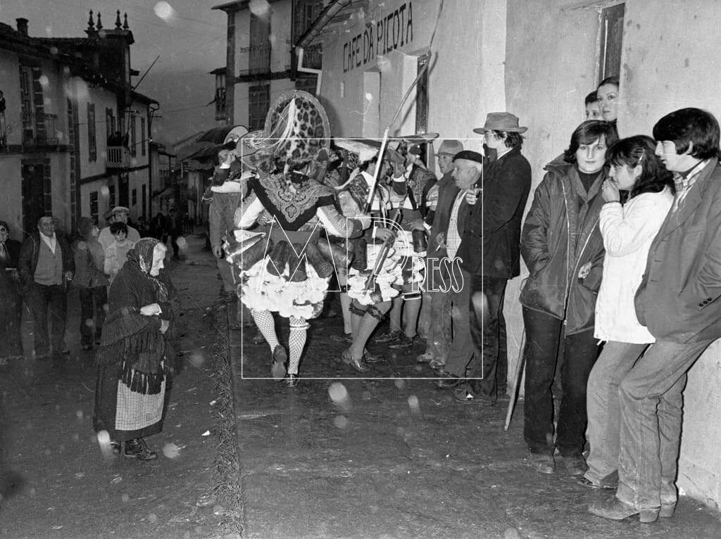Ya hace 41 años de mi visita a la localidad Gallega de Laza, Orense, para hacer un reportaje de los famosos carnavales de Laza, Los “Peleteiros” son los protagonistas quienes se cubren las caras con unas caretas pintadas de figuras de animales, como lobos, cabras, gatos, caballos y con unos trajes muy vistosos de pantalones con borlones, fajas de colores, medias blancas de punto y unos cinturones de cuero que sujetan media docena de grandes cencerros de metal detrás de la cintura.
