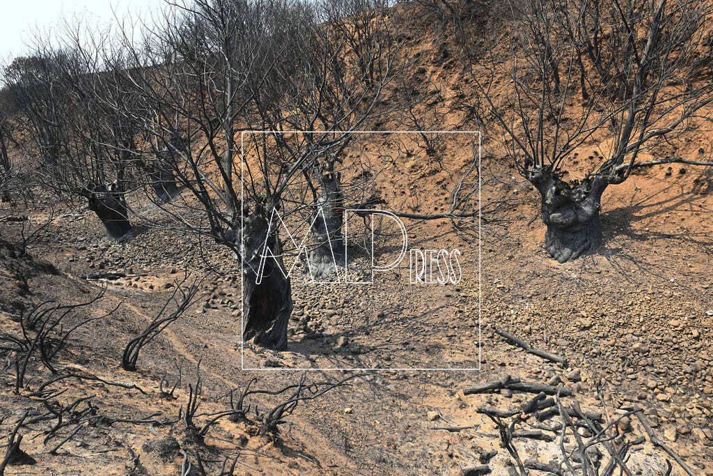 La fauna y la flora han desaparecido casi por completo. Ni ciervos, ni reptiles, ni insectos se dejan ver en una tierra arrasada, donde incluso las colmenas fueron devoradas por las llamas. Solo el vuelo errático de unos pocos cuervos recuerda que todavía queda vida en el paraje.